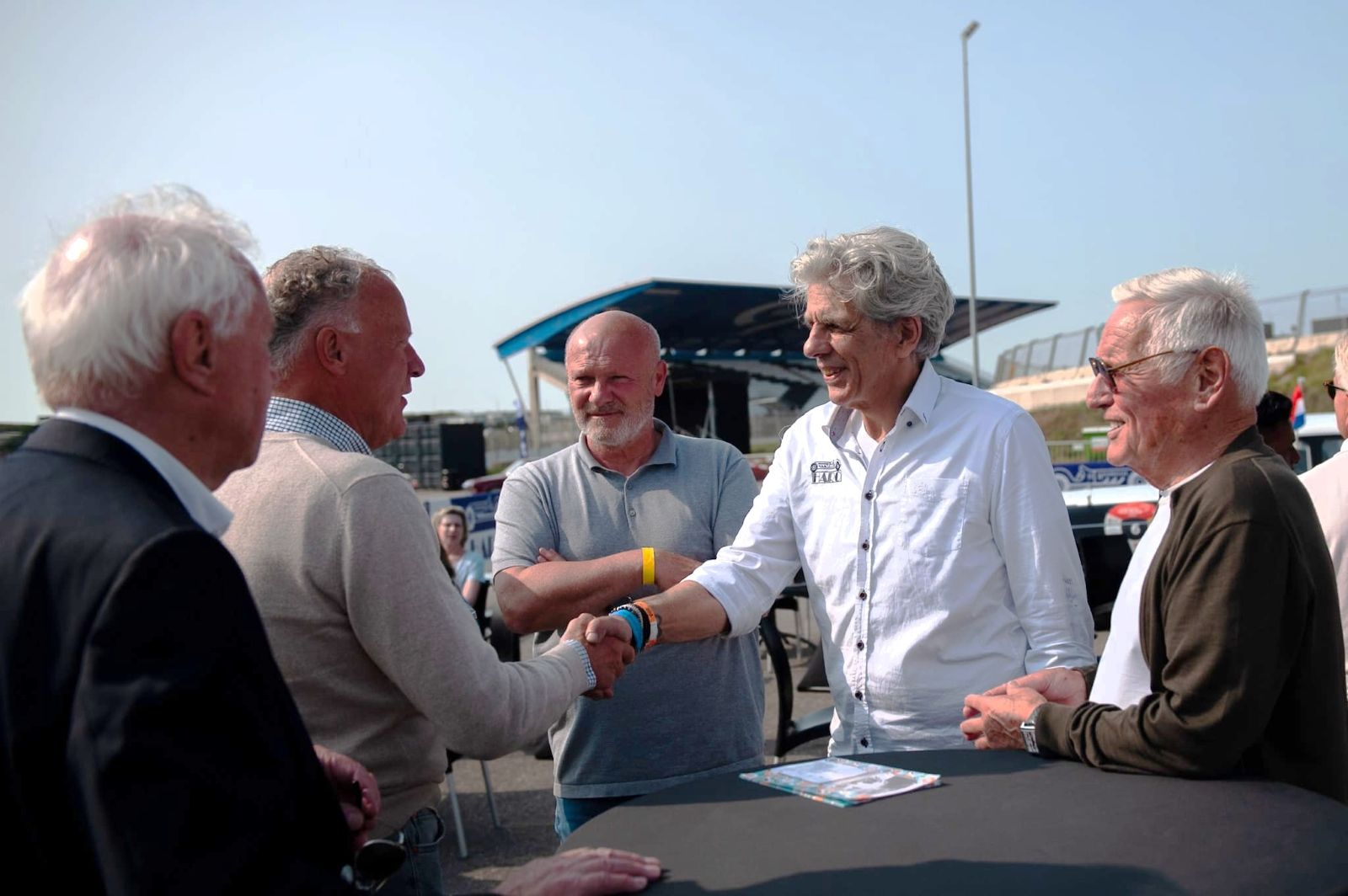 Tijdens de Historische Zandvoort Trophy kregen wij van de NAV een fraaie plaquette uitgereikt als blijvende herinnering aan onze jarenlange samenwerking. Op de foto zien we NAV-voorzitter Jaap Bokhoven (links) die HARC-voorzitter Onno Vlaanderen (rechts) feliciteert. In 1975 zette de HARC de eerste voorzichtige stappen als race-organisator onder de vleugels van de Nederlandse Autorensport Vereniging. Nu, 50 jaar later, zijn de rollen omgedraaid. De NAV organiseert geen races meer en was tijdens de HZT te gast bij de HARC. Sinds 2008 gaat de NAV door het leven als Stichting Register Nederlandse Autorensport Vrienden. De NAV brengt oud-coureurs, officials, journalisten, teammanagers en andere niet meer actieve autosporters samen. Zij treffen elkaar regelmatig bij circuit evenementen (van onder andere de HARC) en andere bijeenkomsten om hun gezamenlijke passie voor de autorensport te blijven delen. De plaquette krijgt een mooie plek op het HARC-kantoor en we hopen de NAV nog vaak te mogen verwelkomen tijdens onze historische race evenementen.